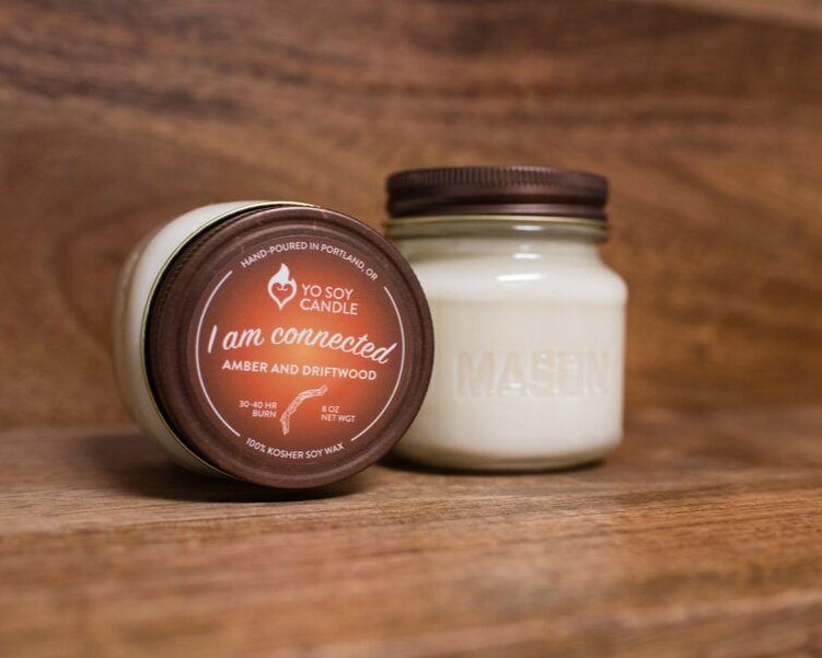 All candles are hand poured in small batches using 100% US grown soy wax, cotton wick, essential oil and fine fragrance blends. Our products are free of phthalates, dyes, lead and parabens for safe breathing. Made in Portland, Oregon.