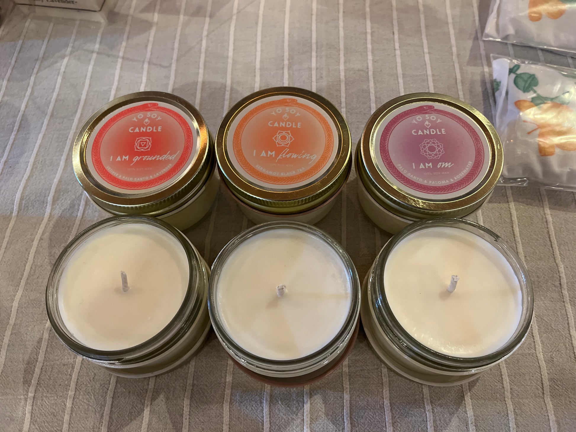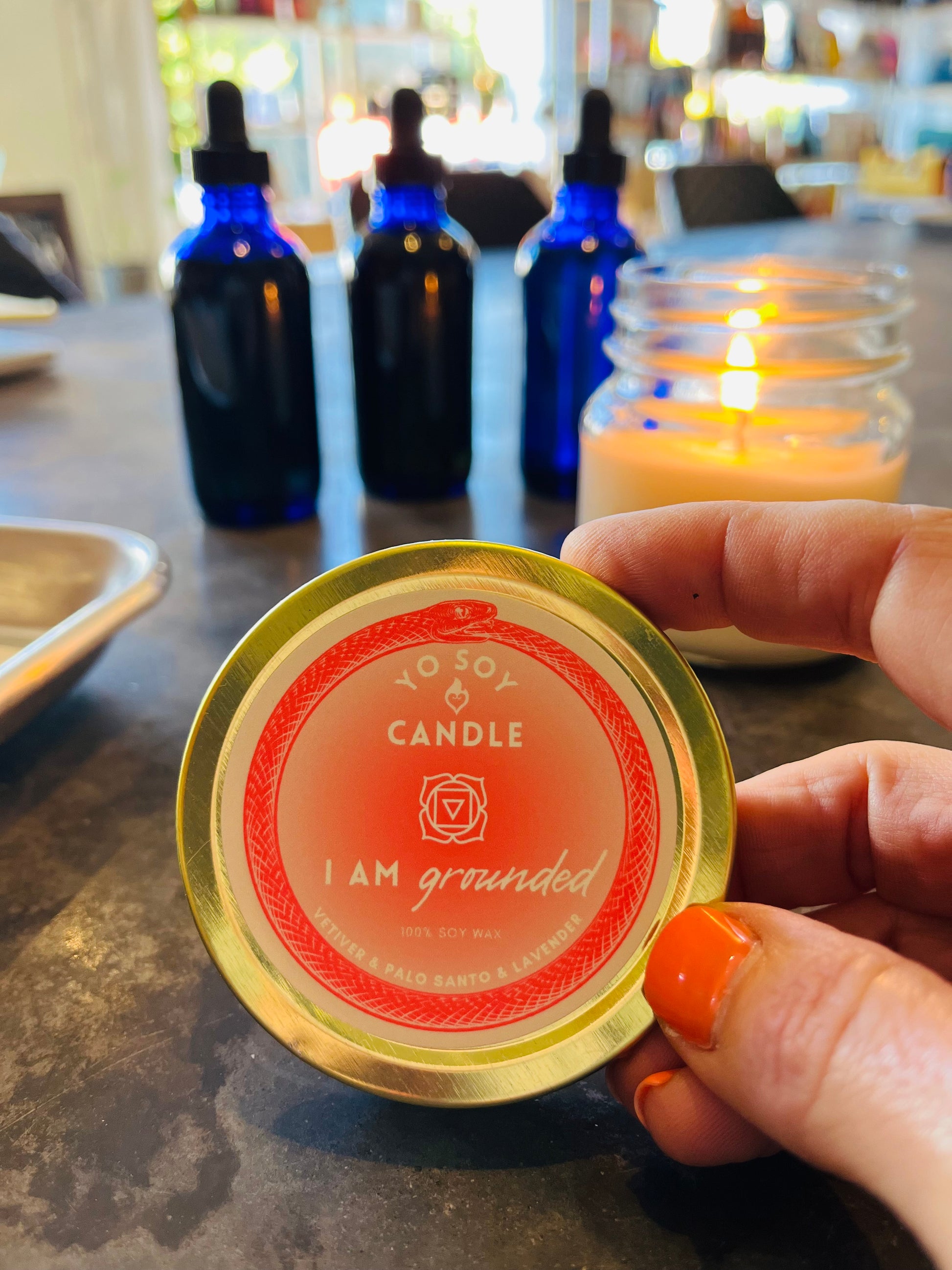 The energy poured into each candle—from the scent blend to the label color, chakra symbol, and affirmation—is inspired by the chakras.